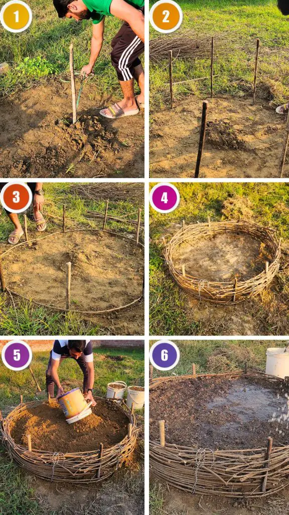 Once the area is prepared, the next step is to build the frame that will hold the soil in place. Instead of buying wooden boards or metal sheets, you can easily make the boundary using old bamboo sticks. Bamboo is one of the best materials for garden construction because it’s lightweight, strong, flexible, and lasts long even in outdoor conditions.