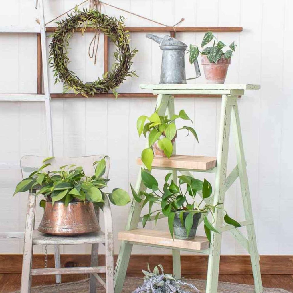 Isn’t this do-it-yourself landscape décor just striking? You may purchase a step ladder or utilize your current one to create it, or if you want to be craftier build one from the beginning, then make an eye-catching ladder with ornamental grasses and plant spring Blooming flowers in plastic bottles and place those bottles on every step of the ladder.