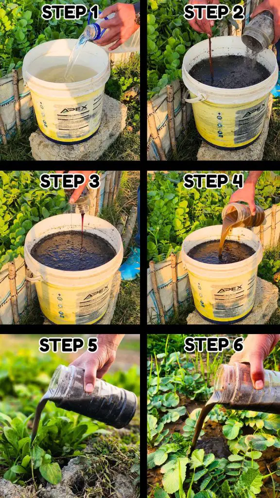 Once the wood ash, molasses, and compost tea are ready, mix all the ingredients thoroughly in the water. Cover the container with a loose lid, allowing airflow while preventing debris from entering. Let the mixture sit for about 24 hours.